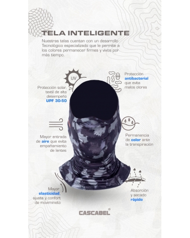 Este producto se ha convertido en uno de los mas versátiles de nuestro portafolio uno de los que "debes tener" ideales para protegerte del sol, si realizas actividades con gafas las perforaciones evitan el empañamiento, tela que se ajusta a tu cara protegiéndote desde la parte alta de la nariz hasta la base del cuello.