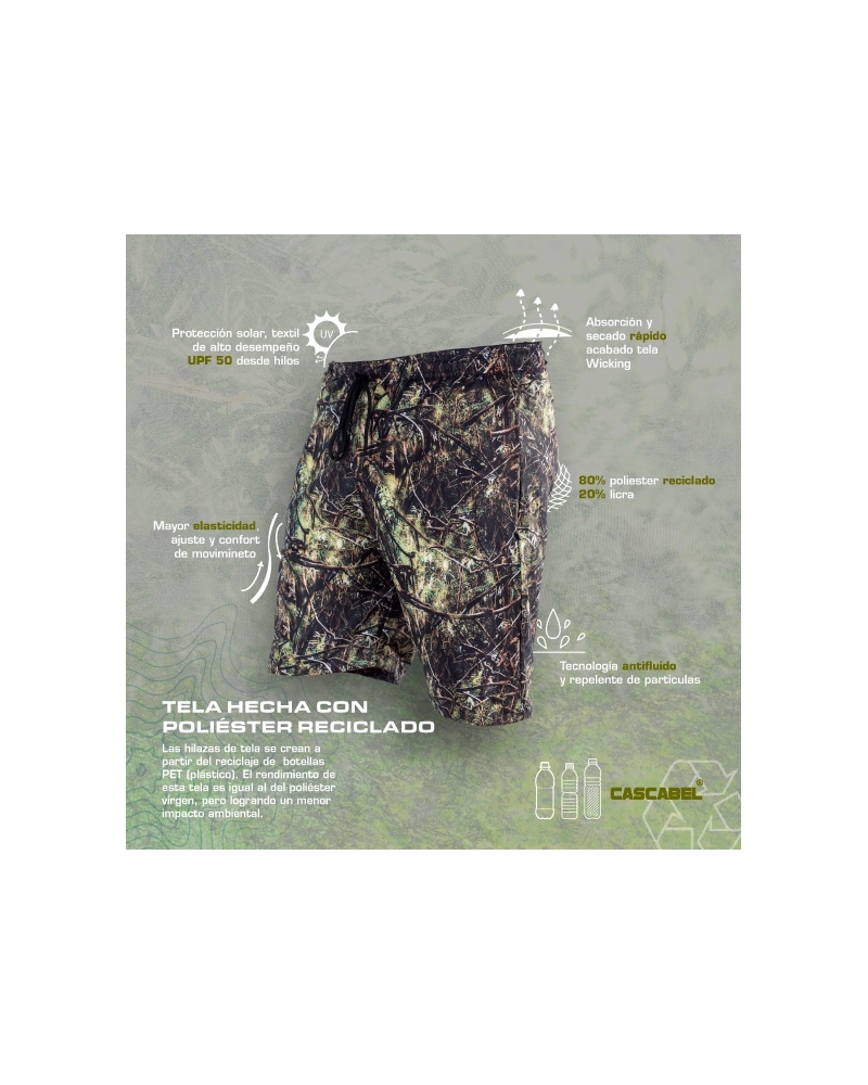 High performance fabric in recycled material, UPF 50 construction protection, liquid and stain repellency.